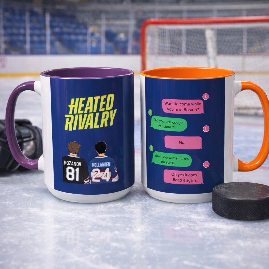 A bold ceramic mug featuring our original Heated Rivalry design. Perfect for everyday use, gifting, or adding character to your desk. A statement accessory made for fans of original, wearable art.